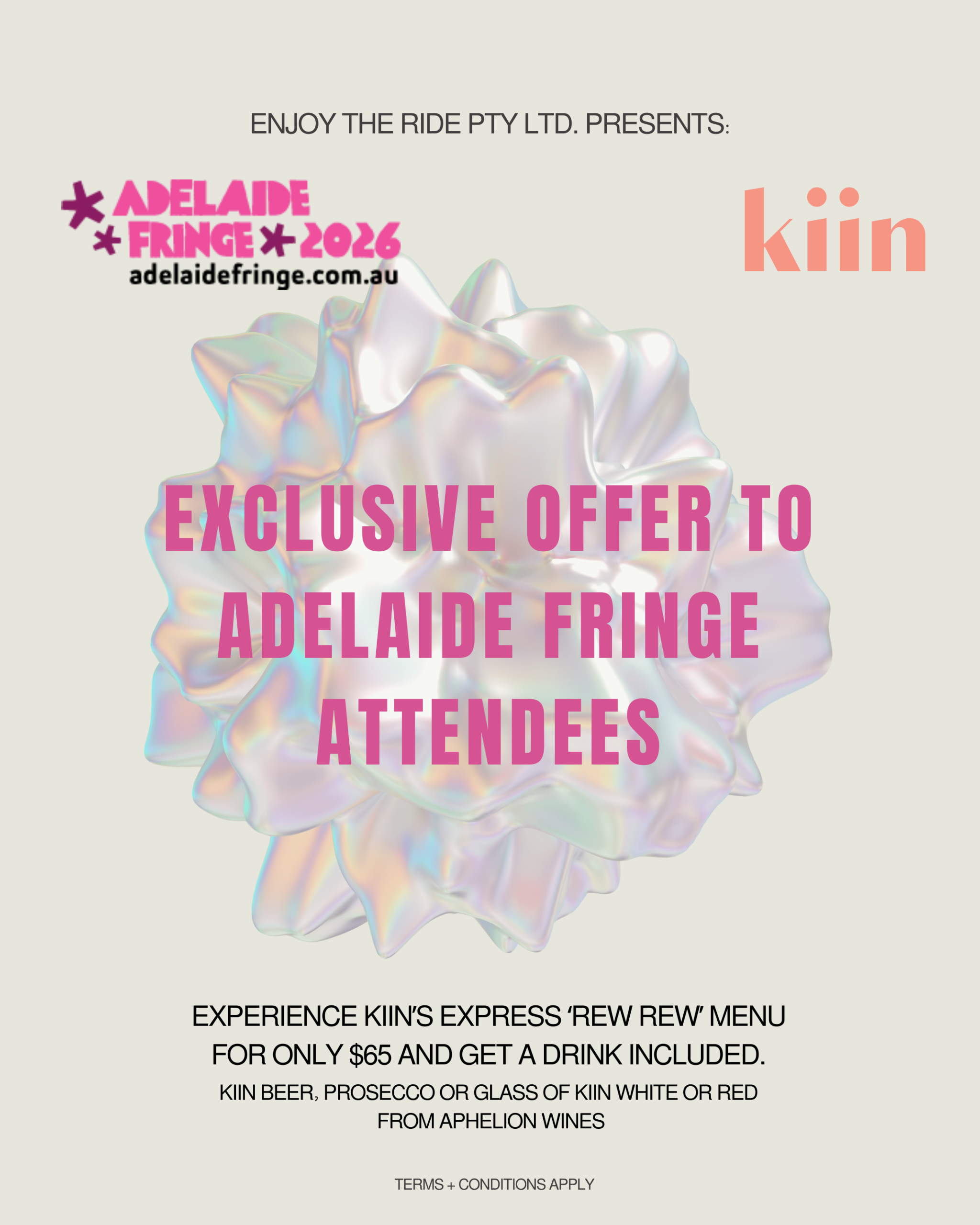 This offer is exclusive to Adelaide Fringe ticket holders and is designed as a one-hour dining experience, perfect for pre-show fuel or a post-show wind-down.